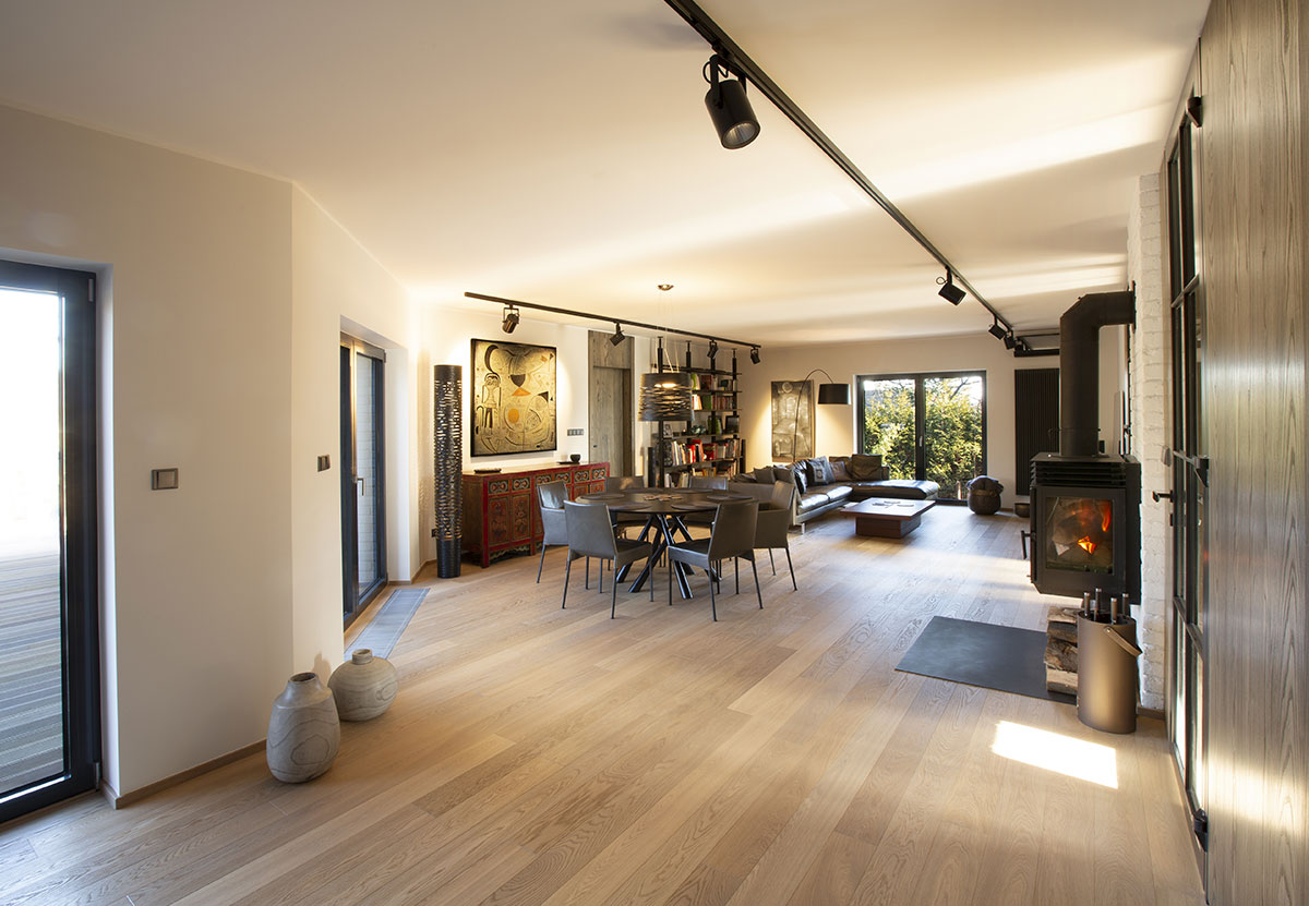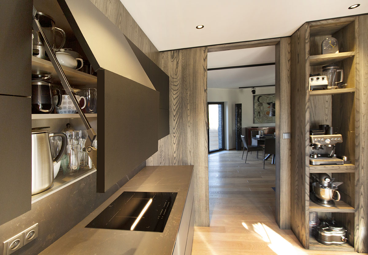 Návrh, dodávka a montáž kuchyňské sestavy Cesar vč. spotřebičů. Dodávka dřevěné podlahy vyrobené na zakázku.